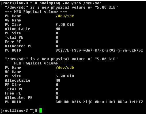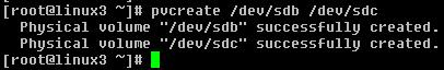 3.) Initializes the partition /dev/sdb and /dev/sdc as physical volume