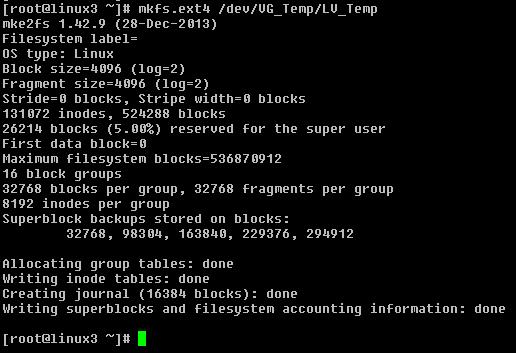 10.) Use the mkfs command to format a newly created LVM :