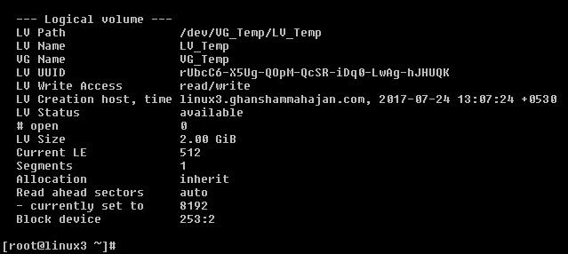 9.) Display the created logical volumes :