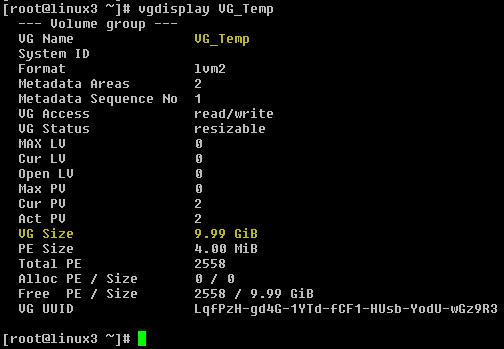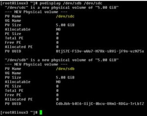 You can see both 5GB disk /dev/sdb and /dev/sdc added in Volume group. Volume group size showing 10GB.