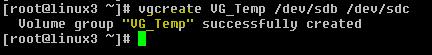 6.) Create volume group name VG_Temp and add /dev/sdb and /dev/sdc partition into the group