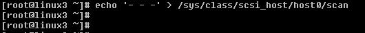 Here “- – -“ defines the three values stored inside host*/scan i.e. channel number, SCSI target ID, and LUN values. We are simply replacing the values with wild cards so that it can detect new changes attached to the Linux box. This procedure will add LUNs, but not remove them.