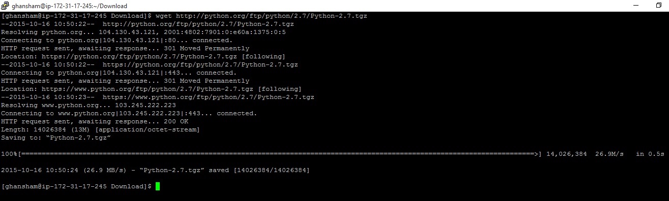 Download]$ wget http://python.org/ftp/python/2.7/Python-2.7.tgz